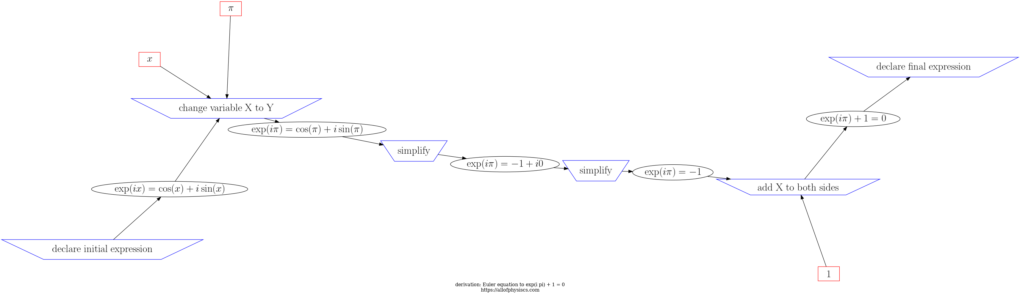 d3js visualization of steps and expressions in Euler equation to exp(i pi) + 1 = 0